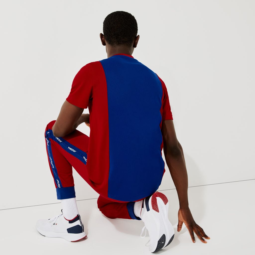 Męski T-Shirt tenisowy Lacoste Men's Sport Breathable Resistant Bicolor T-shirt - blue/red