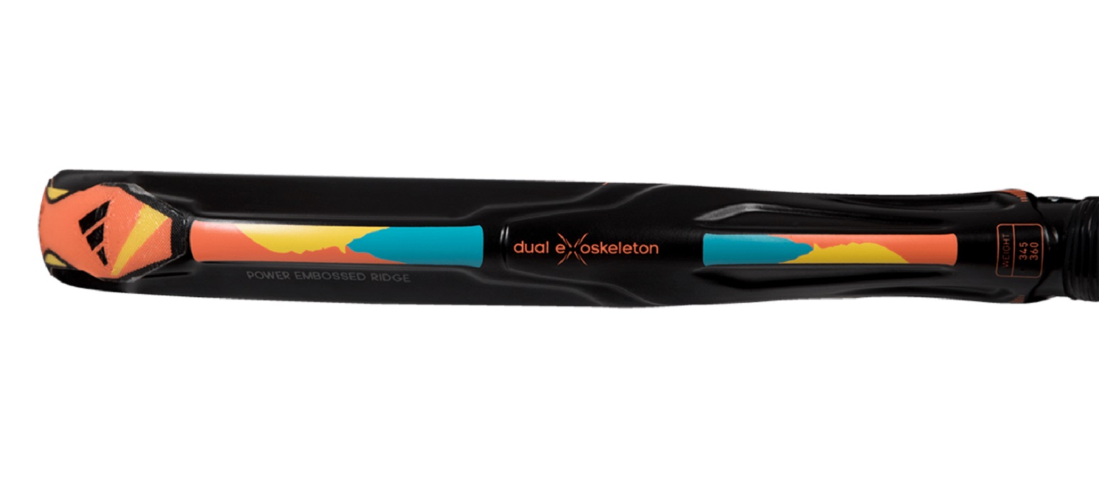 - Dual Exoskeleton - struktura karbonowych krawędzi o podwójnej wysokości wzmacnia rdzeń i ramę rakiety. Zwiększa to sztywność i odporność skrętną rakiety, zapewniając większą stabilność i moc podczas ataków