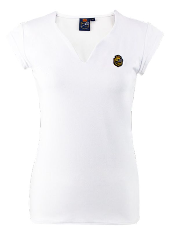 Elastyczny materiał zapewni idealne dopasowanie i bardzo dobrze podkreśli sylwetkę. Delkolt w literkę "V" pozwoli na swobodę i komfort noszenia. Skrócone rękawy zapewnią większy zakres ruchów podczas aktywności. Na lewej piersi Herb Monte Carlo Country Club.